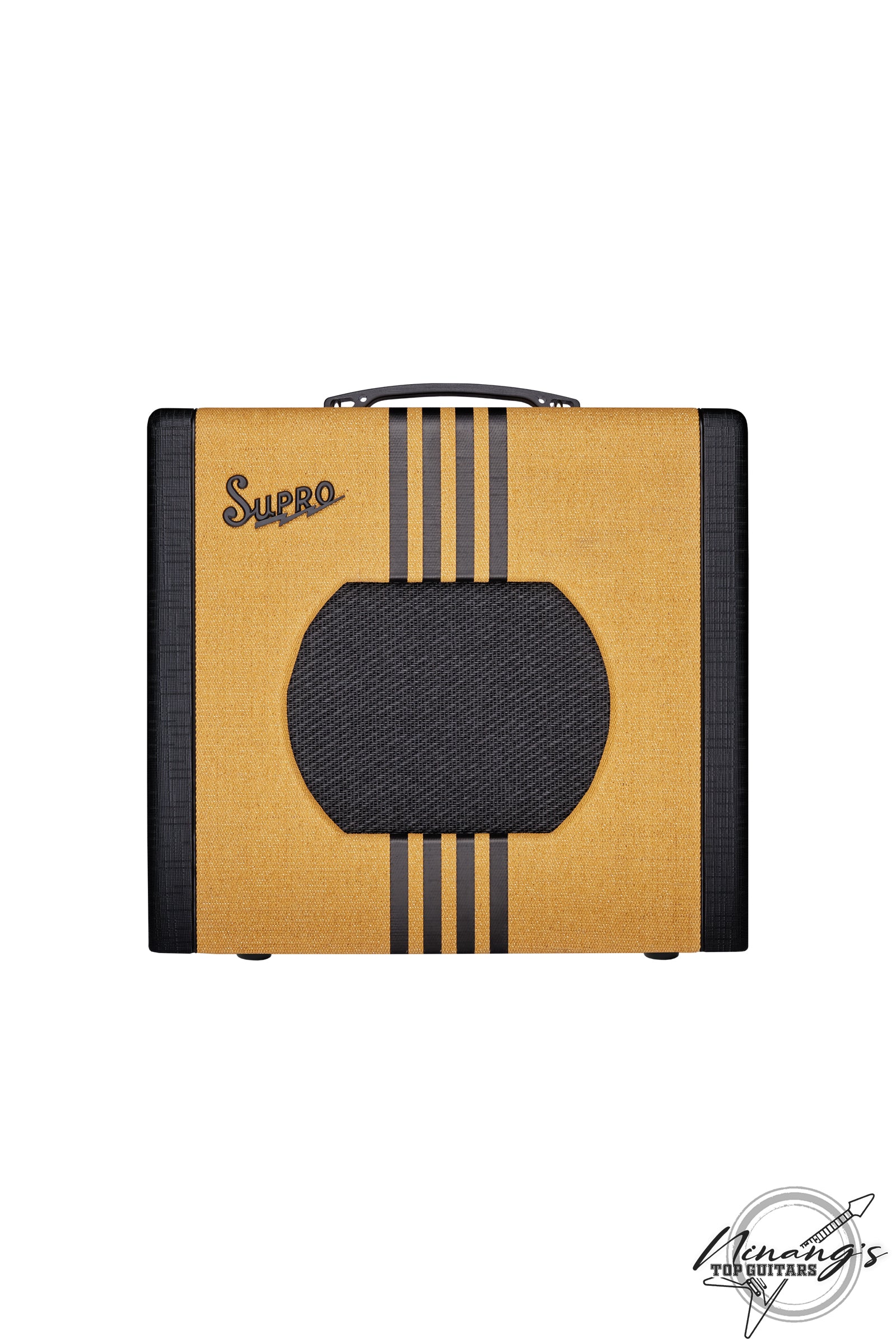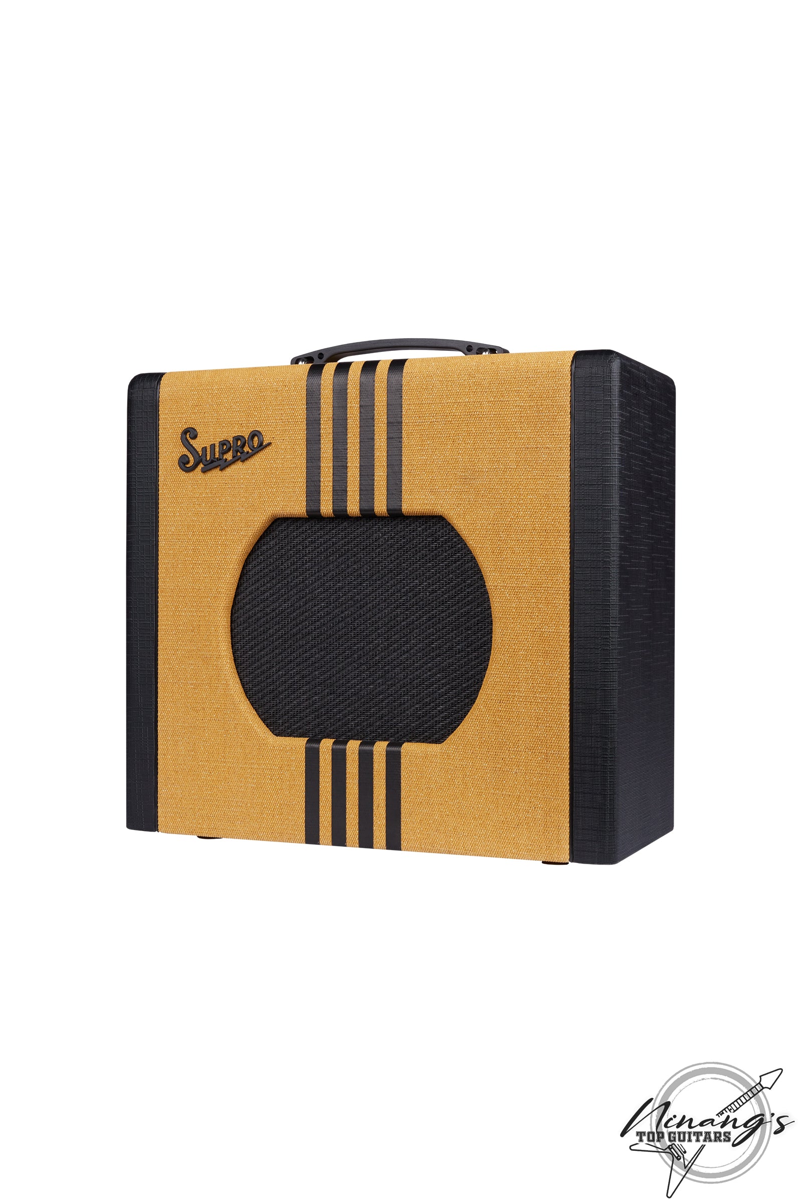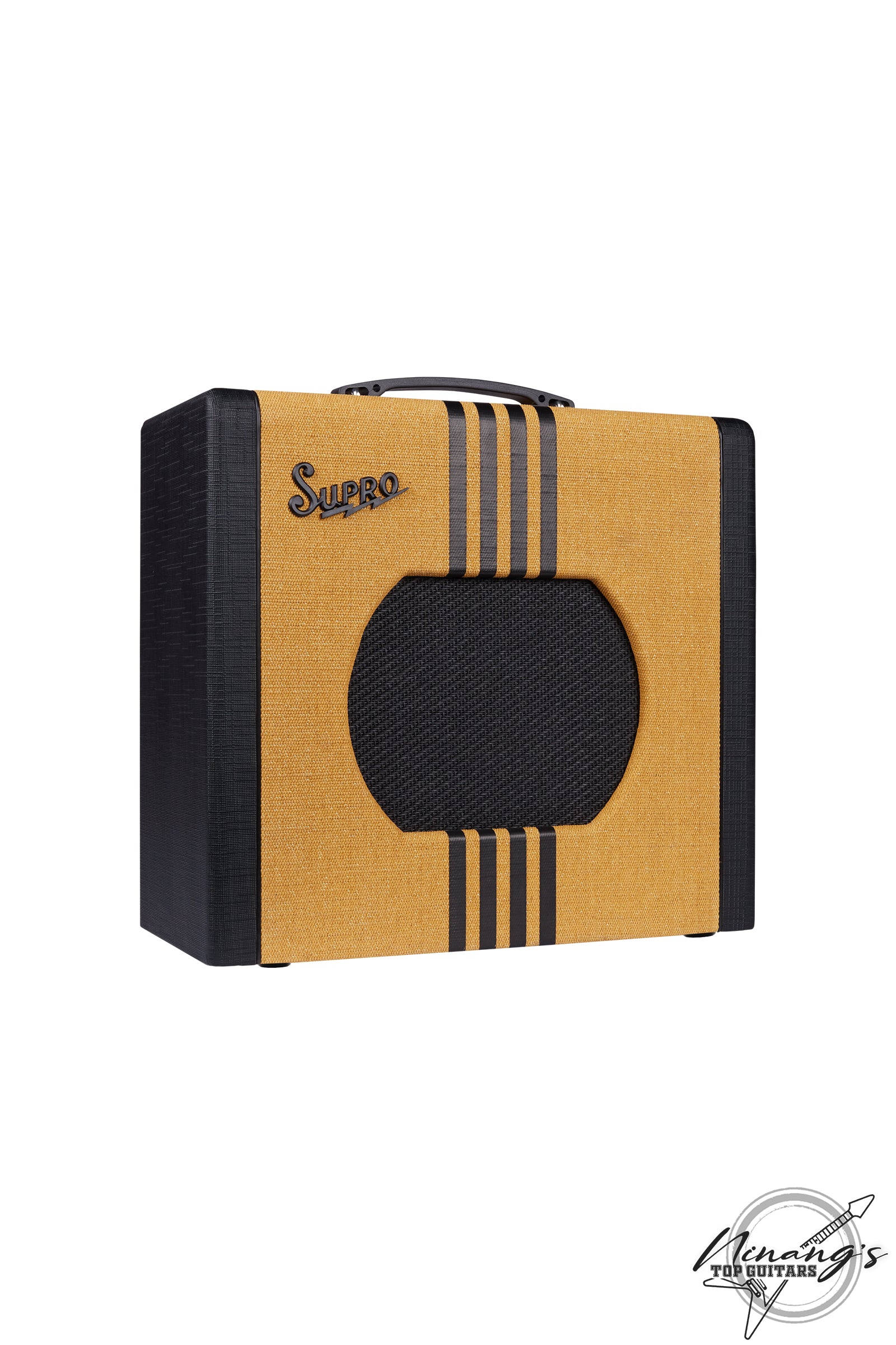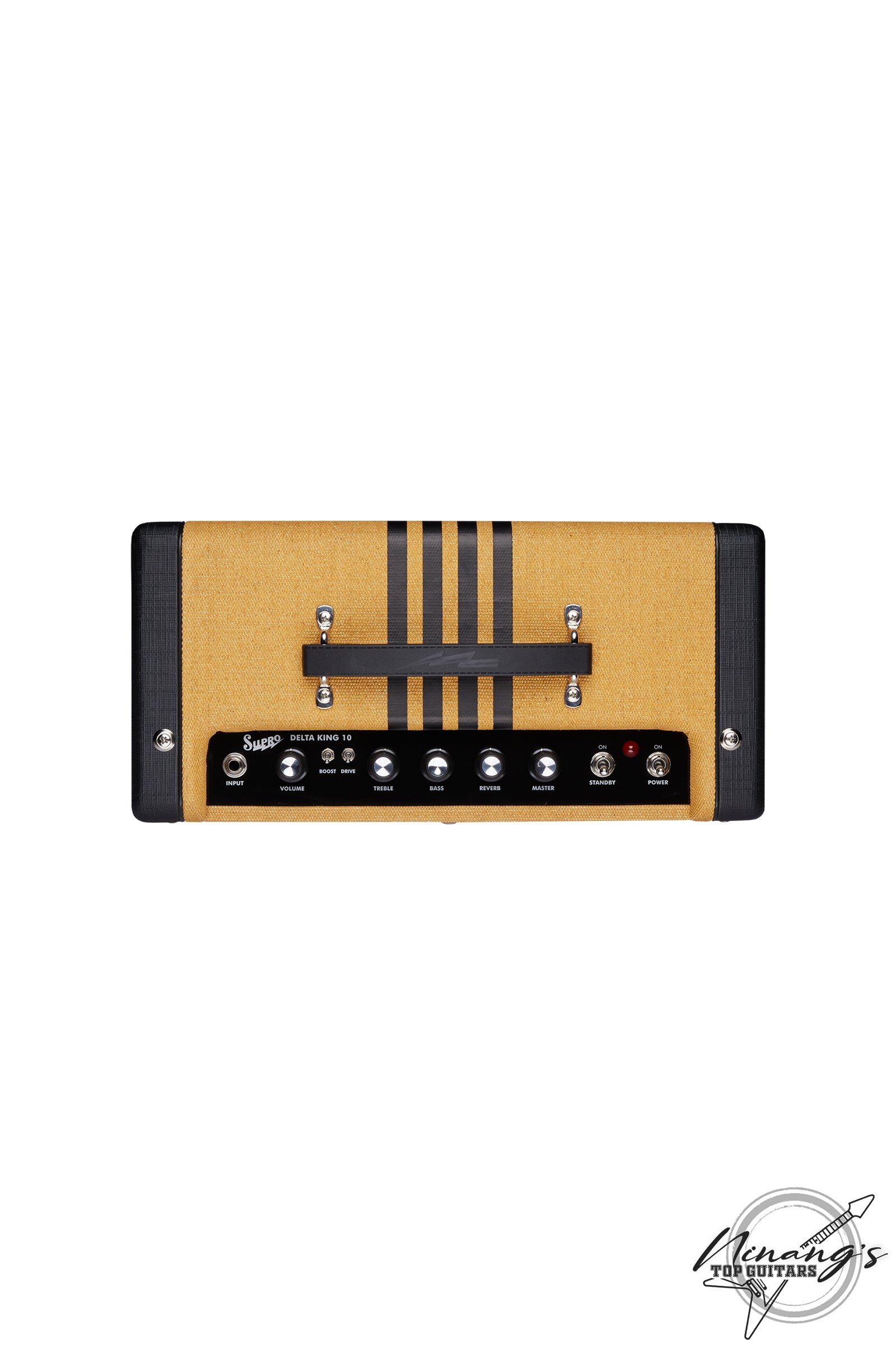 Hearkening back to the original Supro combo amplifiers, the Delta King 10 features a custom, poplar cabinet design, and two unforgettable colorways: custom tweed with black stripes, and black with cream stripes.
