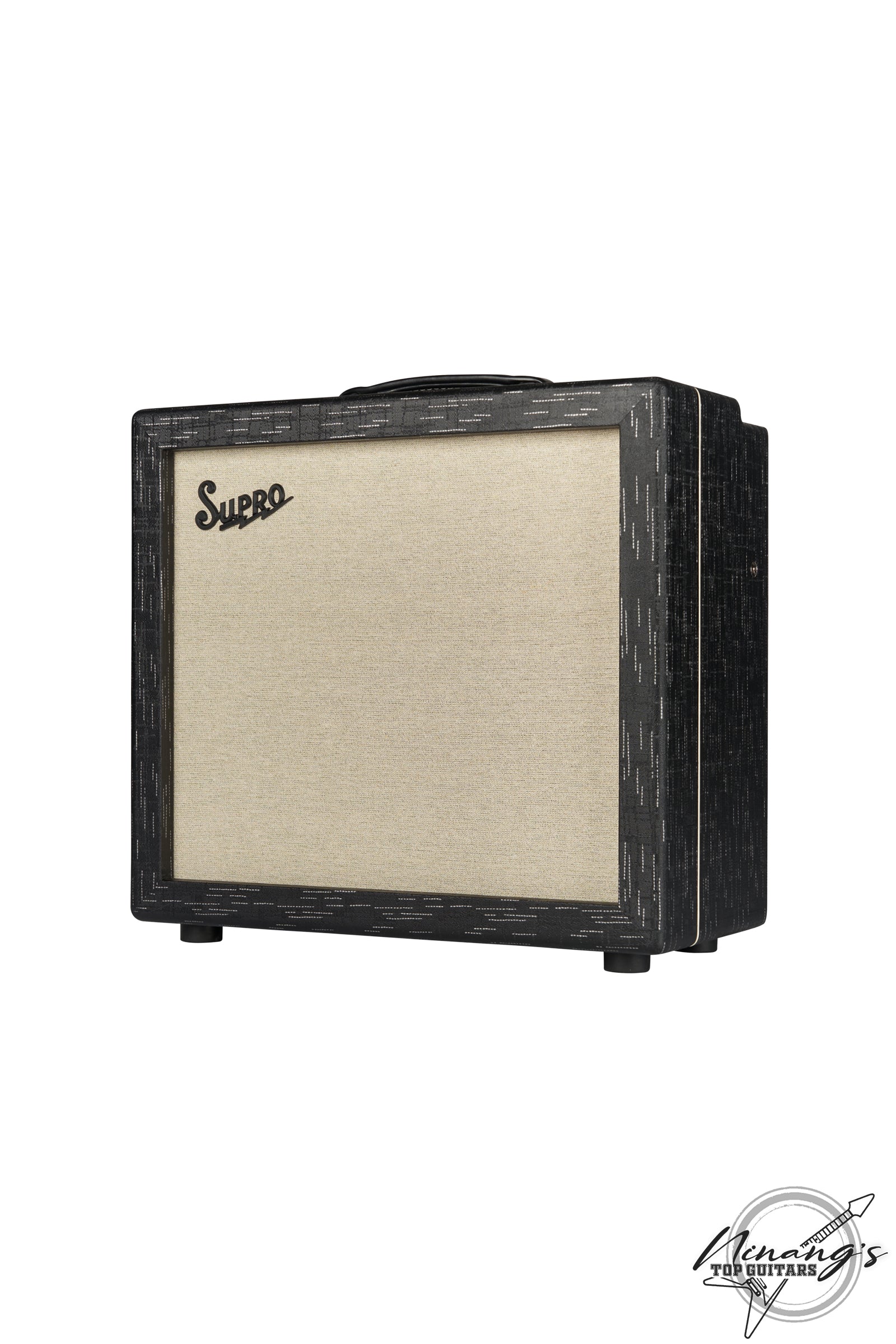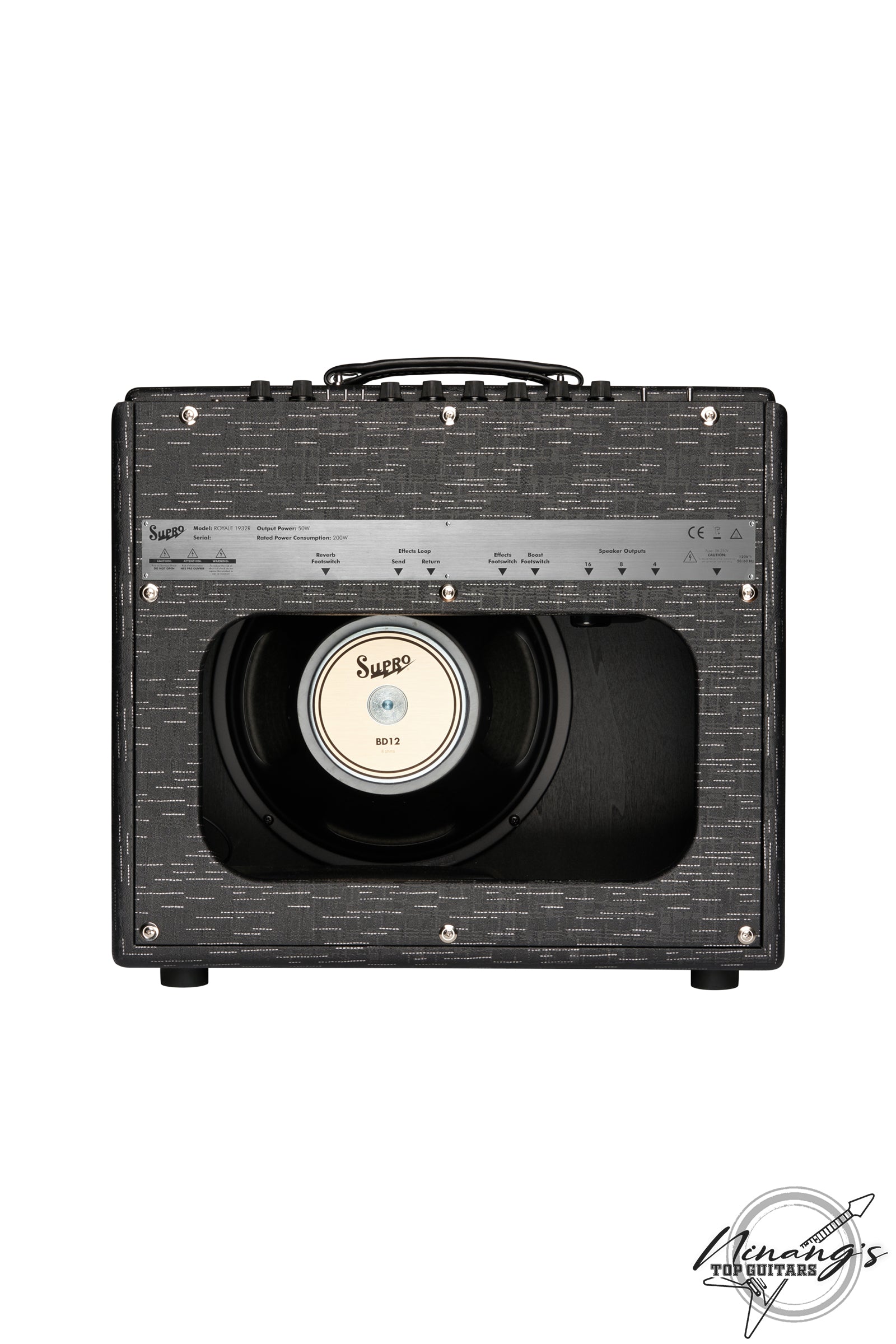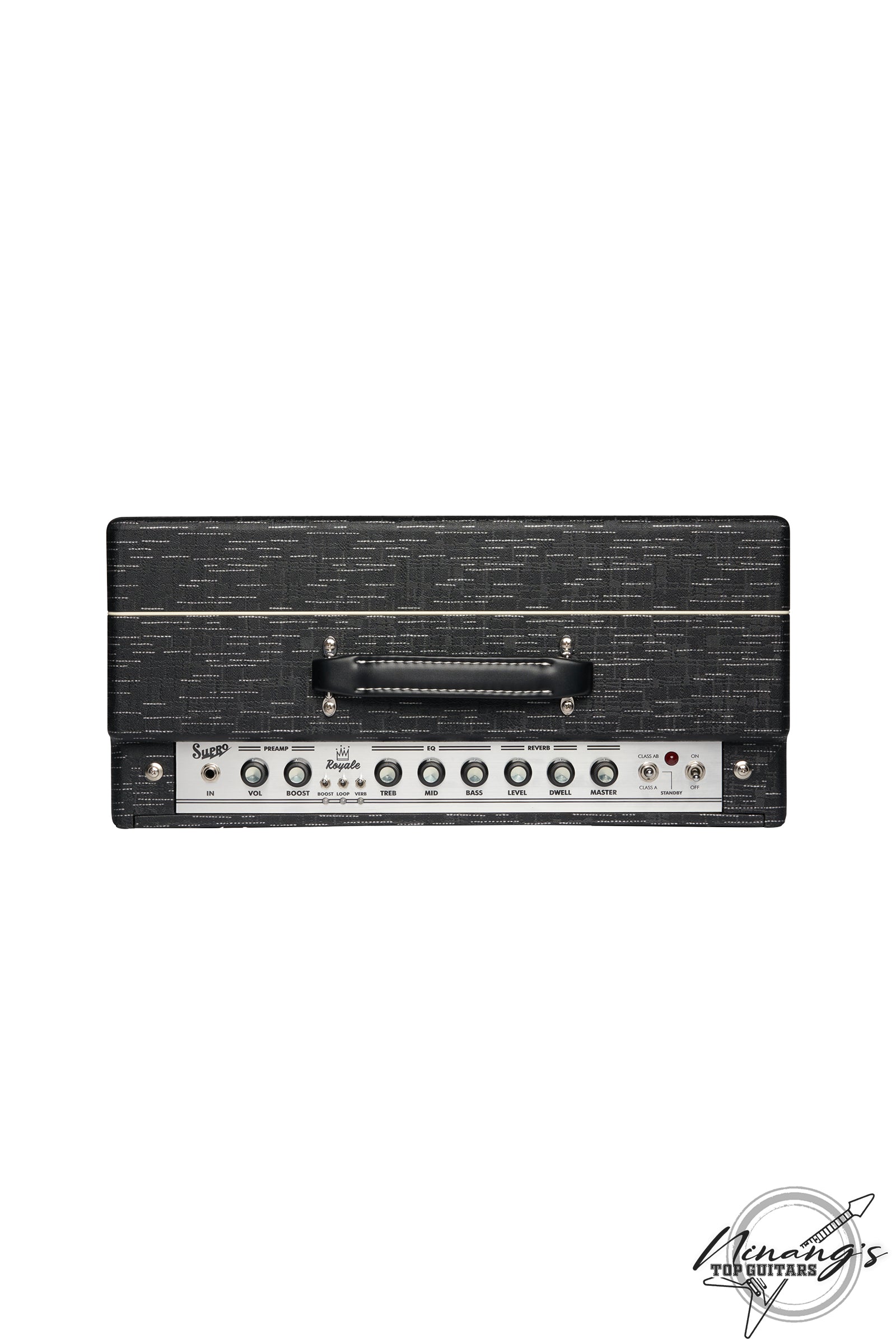 The Royale was designed to deliver loud and vivid clean tone with a remarkably responsive, tactile low end. A high-headroom, 50W tube amplifier with a powerful EQ, footswitchable boost, tube-buffered effects loop and glorious tube-driven spring reverb, the Royale captures all of the nuances in your playing, both on stage and in studio. The 5881-loaded power amp in the Royale offers a choice of Class A (35W) or Class AB (50W) operation, as well as a master volume to control sound pressure level. Class A mode delivers the traditional, cathode-biased Supro sound with a bold, spongy midrange. Class AB delivers a grid-biased California sound with more scooped mid-range, tighter bass and faster transient response. Housed in poplar cabinetry with vintage-inspired Black Scandia tolex and a hemp grille cloth, the Royale is Supro's most dynamically responsive, feature-packed, high-headroom amplifier to date. Features the custom Supro BD12 speaker.